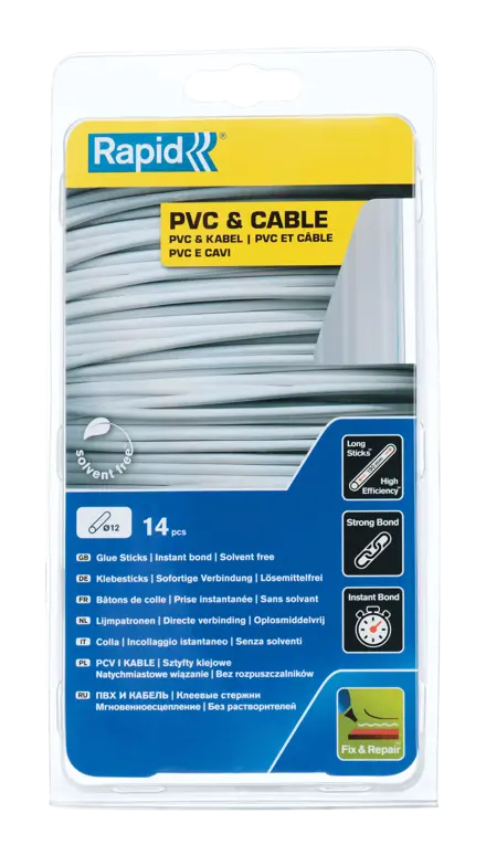 Disse 12 mm limpatroner til PVC og kabel giver effektiv limning takket være en høj koncentration af resin. Perfekt til brug med kabler, PVC, Plastik, Glas.