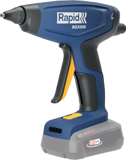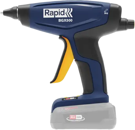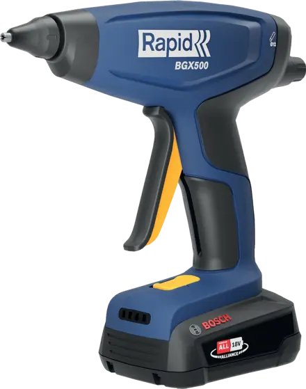 Batteridrevet limpistol med fremragende limoutput. Du kan bruge BGX500 til fastgørelse af ledninger og til istandsættelse. Den er praktisk at have i værktøjskassen, uanset om du arbejder som indretningsdesigner eller installationstekniker eller bare er gør-det-selv-entusiast. Rapid BGX500 er velbalanceret og har en 4-fingeraftrækker, som er designet til at føles behagelig, selv ved længere tids brug. Værktøjets unikke justering af limoutput sikrer, at du får den rigtige mængde lim ved hvert tryk. Udskiftelige tudstørrelser muliggør præcisionsarbejde og mange forskellige anvendelsesområder. Takket være hurtig opvarmning af limen (3 minutter), en indikator, som viser, hvornår limen er klar til brug, og en LED-indikator, som viser batteriets opladningsstatus, kan du arbejde hurtigt og effektivt. Rapid BGX500 indgår i vores batteripartnerskab med Bosch, POWER FOR ALL ALLIANCE. Dermed kan du bruge batteriet til Rapids 18 V-produkter til flere forskellige produkter fra blandt andet Bosch, Gardena, Gloria og Wagner. Vi anbefaler P4A 2,5 Ah-batteriet, som giver op til 2,5 times driftstid. Batteri og oplader medfølger ikke, men sælges separat.