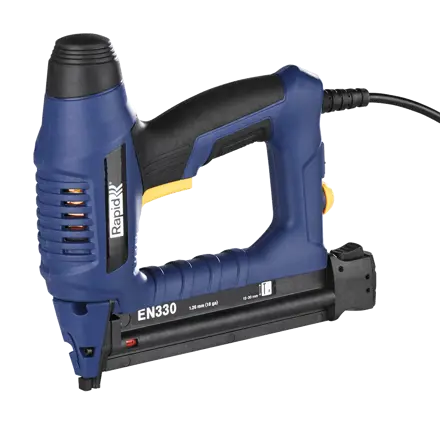 Denne EN330 er en komfortabel elektrisk dykkerpistol, den bruger dykker nr. 8. 15-30mm, samt 18Ga. Den er perfekt til at arbejde i træ, for eksempel at fastgøre lister rundt om vinduer eller døre, panelmontering, eller lettere job, såsom indramning eller andre dekorative projekter. EN330 er fremstillet til gør det selv folket, og semi proff folket. Den udvidet næse, gør det lettere at få adgang til trange steder og rum. Dermed reducerer brugertræthed, den er produceret af de bedste dele, så dens levetid bliver dermed forlænget.