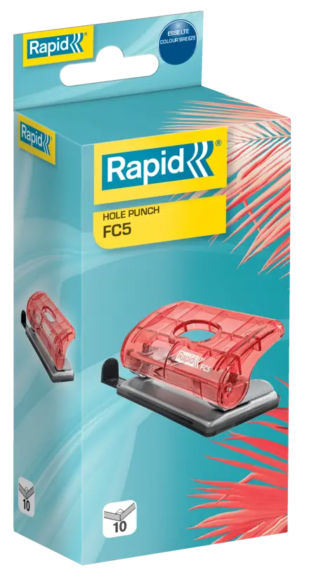 Lassen Sie sich von den leuchtenden Farben der Natur inspirieren und kreieren Sie eine entspannte und positive Arbeitsumgebung mit der Colour'Breeze-Serie. Das Design lässt Dich von Deinem nächsten Abenteuer träumen und sorgt dafür, dass Du beim Studieren, Lernen oder bei der Arbeit organisiert und motiviert bleibst. Der Rapid Colour'Breeze Locher ist kompakt und leicht und arbeitet mit einer 2-fach Lochung, die bis zu 10 Blatt Papier (80 g/m²) auf einmal lochen kann. Mit seiner stabilen Metallkonstruktion und dem durchsichtigen Kunststoffgriff stanzt er mühelos und präzise durch Ihre Dokumente. Mit seinem äußerst kompakten Design lässt er sich leicht in einer Schublade verstauen oder in der Schul- oder Handtasche unterwegs mitführen. Erhältlich in verschiedenen leuchtenden Farben und mit der frischen und trendigen Colour'Breeze-Prägung. Eine frische Brise im Leben!