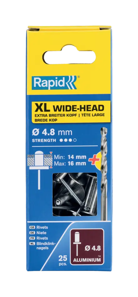 Diese hochwertigen Niete aus Aluminium haben einen großen Flachrundkopf. Ihre breitere Auflagefläche sorgt für höhere Beständigkeit und Widerstandsfähigkeit der Verbindung beim Befestigen weicherer Materialien wie z. B. Leder und Gummi auf härteren Materialien. Ein passender Bohrer ist in der Verpackung enthalten.