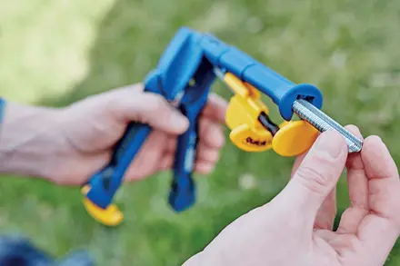Die FP216 ist eine zuverlässige und einfach zu nutzende Zaunzange, die sich besonders für die Sicherung von Zäunen und andere Anwendungen in schmalen oder engen Bereichen eignet. Ein Magazin mit großer Ladekapazität, der ergonomische Griff mit Softgrip und die Griffverriegelung für einfaches Verstauen erhöhen die Leistung und den Bedienkomfort. Die FP216 verarbeitet Ringklammern Typ VR16.