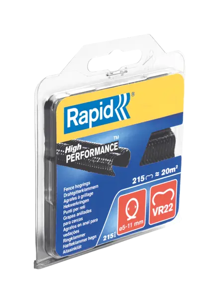 Diese hochwertigen Ringklammern mit schwarzem Kunststoffüberzug sind eine effiziente Lösung beim Befestigen von Spanndrähten an Zäunen. Geeignet für die Nutzung mit Maschendraht 5 - 11 mm Durchmesser und ideal zum Sichern von Käfigen, zum Einzäunen oder zum Schutz junger Pflanzen. Auch erhältlich rein galvanisiert oder mit grünem Kunststoffüberzug für die unauffällige Befestigung farbiger Zäune.