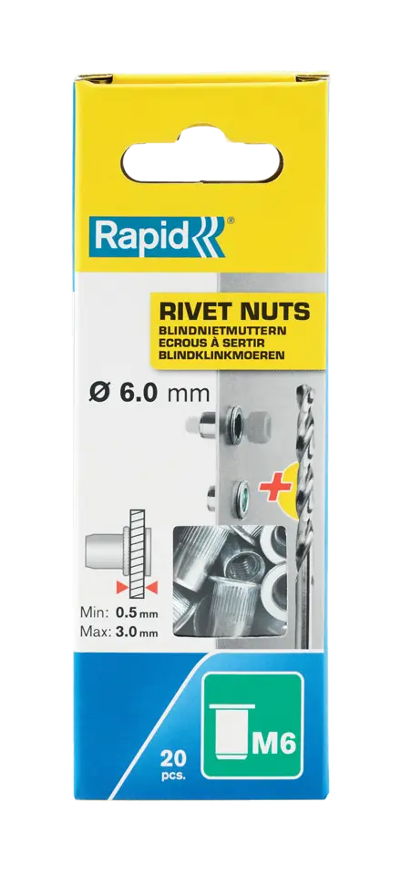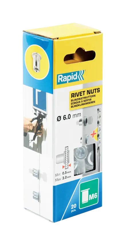 Diese Blindnietmuttern sind die Lösung, wenn das Setzen eines Mutterngewindes unpraktisch oder unmöglich ist. Sie haben ein Innengewinde und können komplett von einer Seite gesetzt werden. Sie machen die Nutzung einer herkömmlichen Mutter auf der Rückseite der verbundenen Materialien überflüssig und erhöhen die Arbeitseffizienz, da die Arbeit von einer Seite erledigt werden kann. Besonders bei der Befestigung dünner Materialien dienen Blindnietmuttern als Käfigmuttern oder Niet und sind ideal für Werkstücke mit einer geringen Klemmlänge (weniger als 3 mm).