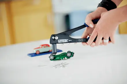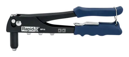 Für schnelles, problemloses Nieten: das praktische Set enthält 100 Niete, mit denen sofort mit der Arbeit begonnen werden kann. Die ergonomischen Griffhebel mit Softgrip sorgen für angenehmes Arbeiten. Die RP10 hat außerdem einen praktischen integrierten Montageschlüssel. Sie verarbeitet Niete mit Durchmesser 3,2 - 4,8 mm.