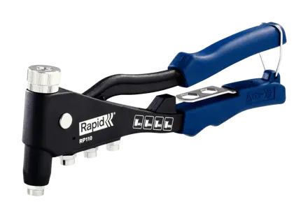 Die RP110 ist eine Blindnietmutterzange, mit der Materialien zusammengefügt werden können, wenn keine Möglichkeit besteht auf der Rückseite eine Mutter setzen. Mit diesem robusten Werkzeug aus Aluminium Druckguss können Blindnietmuttern M3, M4, M5 und M6 verarbeitet werden – Niete mit einem innenliegenden Schraubgewinde. Ist eine Blindnietmutter gesetzt, wird einfach nur eine Schraube in das Gewinde gedreht. so dass zwei Materialien miteinander verbunden sind, ohne dass eine Mutter verwendet wird. Sollte es einmal nötig sein, kann eine Blindnietmutter im Gegensatz zum Blindniet ganz einfach entfernt werden. Die RP110 ist mit einem Stahlhebel, gehärteten Mundstücken für eine lange Lebensdauer und einem Griff mit Softgrip für hohen Bedienkomfort ausgestattet.