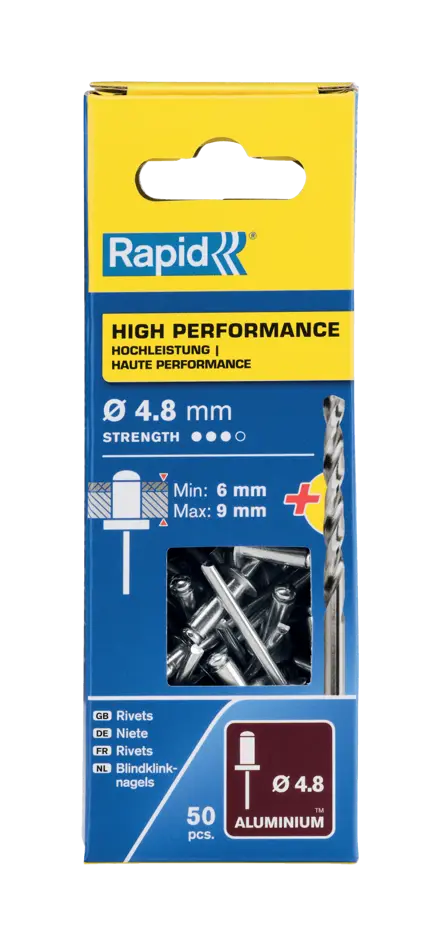 Diese hochwertigen Niete aus Aluminium sind perfekt zur Befestigung von Teilen an exponierten Stellen wie z. B. Schutzblechen, Metall- und Kunststoffverkleidungen, Schildern und Blechen. Ein passender Bohrer ist in der Verpackung enthalten.