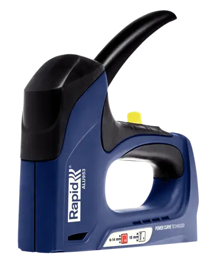 Der neu entwickelte, revolutionäre ALU953 ist für Hobby- und Heimwerker, die professionelle Leistung suchen. Dank der neuen patentierten Powercurve™ Technologie von Rapid, die der natürlichen Leistungskurve der Hand exakt folgt, ist er bis zu 65 % leichter auszulösen als herkömmliche Handtacker. Das bedeutet, dass der Tacker die Kraft des Anwenders optimal nutzt, Energie spart und Ermüdungserscheinungen reduziert. Der ALU953 kann regelmäßig benutzt werden wie z. B. beim Polstern von Möbeln, Dekorationsarbeiten mit diversen Stoffen und Geweben oder bei der Befestigung von Teppichen, Wandbespannungen, Leder oder dünneren Platten.