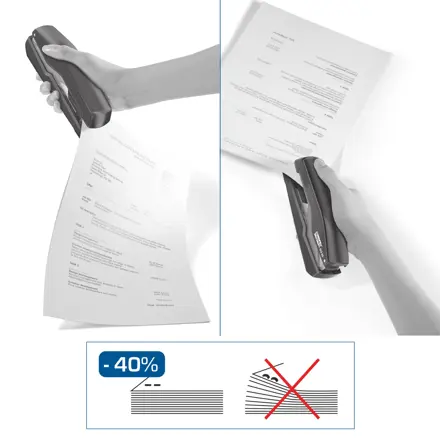 Το επαναστατικό fullstrip συρραπτικό με την πατενταρισμένη τεχνολογία Omnipress®, μπορεί να πιεστεί οπουδήποτε εύκολα και χωρίς κόπο για επιτραπέζια συρραφή και συρραφή στο χέρι. Η μοναδική τεχνολογία SuperFlatClinch μειώνει τις στοίβες χαρτιού κατά 40%.