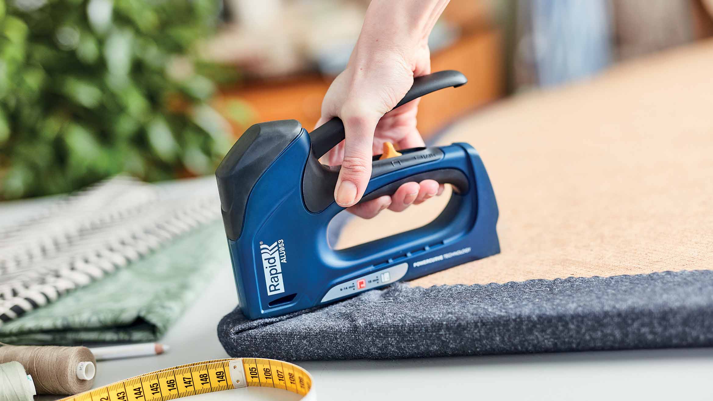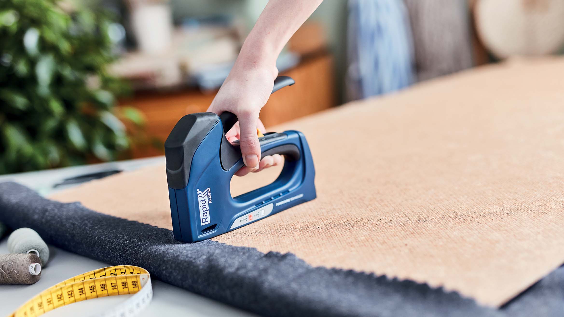Fine wire staples are the best choice when reupholstering with textiles. Because they are thin, they only make small holes in the fabric and do not damage the threads. For a long-lasting result, the staple must be at least three times longer than the thickness of the fabric. Bear in mind that you need extra-long staples when attaching fabric to corners, and other places where the fabric is folded into multiple layers.
