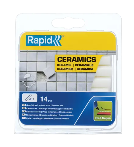 These 12 mm glue sticks deliver high quality bonding thanks to high resin levels. Perfect for ceramics, tiles, faience, porcelaine and other porous materials. Good also for sealing, concrete and stone. The package contains 14 long glue sticks, perfect for fix and repair jobs.