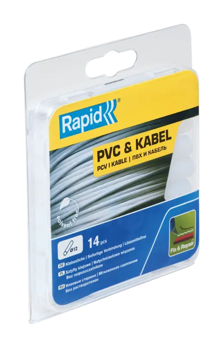 These 12 mm glue sticks deliver high quality bonding thanks to high resin levels. Perfect for PVC, cables and numerous plastics. Good also on rubber, glass and plexiglass. The package contains 14 short glue sticks, perfect for fix and repair jobs.