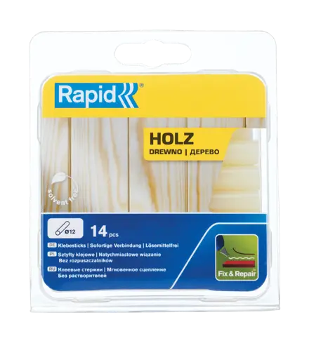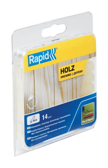 These 12 mm glue sticks deliver high quality bonding thanks to high resin levels. Perfect for wood, paper, cardboard and derivatives. Good also for cork. The package contains 14 short glue sticks, perfect for fix and repair jobs.