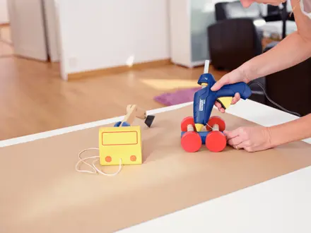 Smart and ergonomic glue gun for decoration and simple repair jobs. EG212 has an adjustable stand and works with 12mm glue sticks.