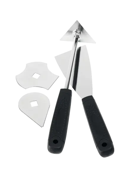Handy Paint Scraper set for all types of paint removal. Supplied in 5 parts, including 3 replaceable cutting blades designed for different surfaces.