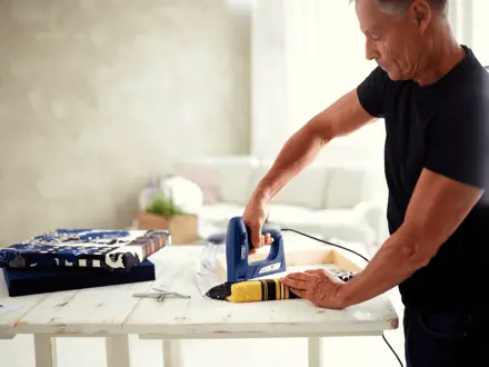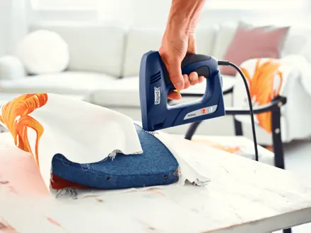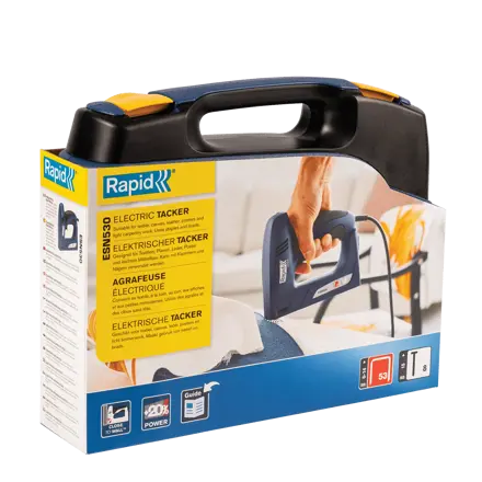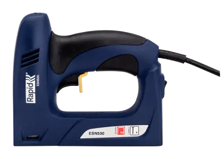 An easy to manage, powerful electric staple gun for more demanding projects around the house, the ESN530 is ideal for furniture upholstery, textile work or fastening carpet, leather or thinner wooden material. This model’s flat front also offers simpler access into corners, angles or other tight spaces, increasing working efficiency and user comfort. An all-steel dual magazine and quality construction deliver extended working life.