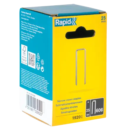 An effective solution when fixing through tough materials or where long depth is required, these precision cut, narrow crown staples are made from high performance, galvanized steel and work like a double brad. Resin coated to increase their resistance to removal, these are ideal for heavy duty fixing, flooring, wood panelling, wall boards, frames, partitioning. Resin coating gives them optimal fixing characteristics in wood.