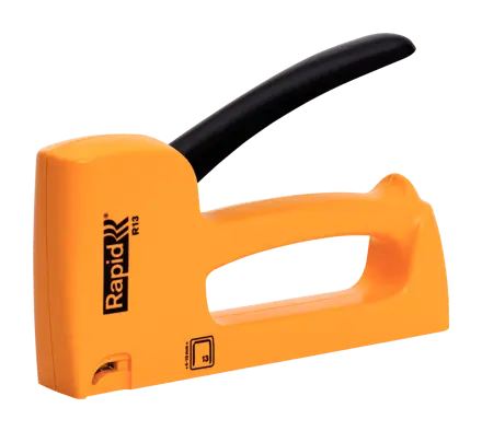 Light, easy to handle staple gun for home projects or easier professional jobs. Made in tough, robust plastic, DIY and home craftsmen appreciate features such as high performance, light weight, long working life and its ability to cope with regular use. The R13E is also suitable for users with smaller hands. Ideal for furniture upholstery, decorative work with diverse textile types or fastening of quilts, posters or leather.