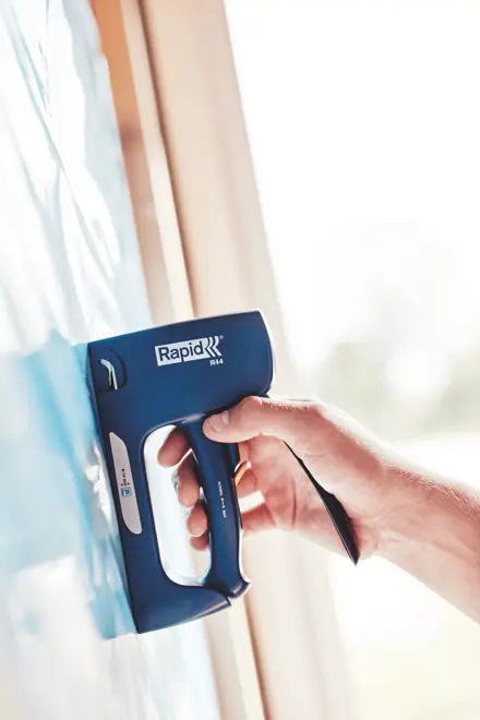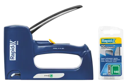 Easy to use kit including staple gun and staples designed for fastening of insulation materials and plastic foil as well as other roofing applications. The choice of DIY and home users seeking superior quality solutions, this kit offers high performance levels, a long working life and the capacity to be used regularly and intensively. 2-step force adjuster can be set to reflect different types of material and the length of staple being used. Delivered with flatwire staples specifically designed for insulation material where high levels of fastening are demanded.