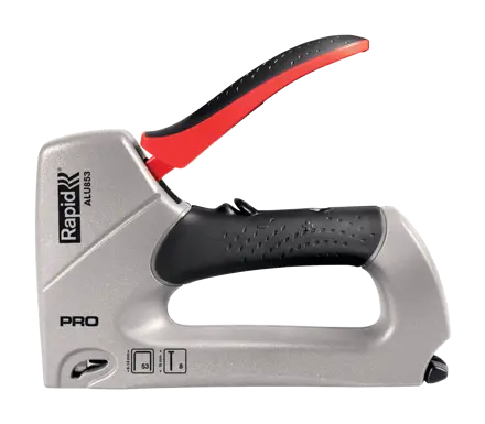 Clavadora ligera, potente y duradera con cubierta de aluminio moldeado y piezas internas sujetas a desgaste completamente en acero. Empuñadura y mango ergonómicos, cubiertos con material blando antideslizante. Herramienta profesional para tareas exigentes que requieren grapas finas y clavillos.