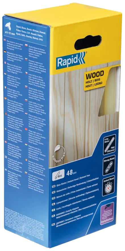 Deze 12 mm lijmpatronen zorgen voor een sterke verbinding dankzij de hoge harsniveaus. Perfect voor hout, papier, karton en houtderivaten. Ook geschikt voor kurk. De verpakking bevat 48 lange sticks, perfect voor installatiewerkzaamheden.