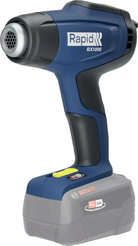 Een accuheteluchtpistool komt thuis goed van pas voor het plaatsen van krimpkousjes, het vormen van kunststof, het ontdooien van waterleidingen, het verwijderen van stickers, het waxen van snowboards en ski's of voor het verwijderen van onkruid. Rapid's RX1000 heteluchtpistool warmt snel op tot 550 °C, wat voor meeste klussen gebruikt wordt. Een duidelijk LCD-scherm voor het regelen van de temperatuur en luchtstroom geeft ook de laadstatus van de accu weer. Uniek ontgrendelingssysteem maakt het mogelijk om hete mondstukken makkelijk te verwijderen zonder je te verbranden, wat zorgt voor extra veiligheid. Dankzij twee luchtstroominstellingen kun je flexibel werken. Kan stabiel vlak neergezet worden zodat je altijd beide handen vrij hebt om te werken. De Rapid RX1000 maakt deel uit van Bosch's POWER FOR ALL ALLIANCE (P4A). Hierbij is het mogelijk dezelfde accu te gebruiken voor 18V P4A producten van Rapid en merken als Bosch, Gardena, Gloria en Wagner. We raden de Bosch P4A 4,0 Ah accu aan, die tot 22 minuten werktijd geeft. Accu en oplader niet inbegrepen, apart verkrijgbaar.